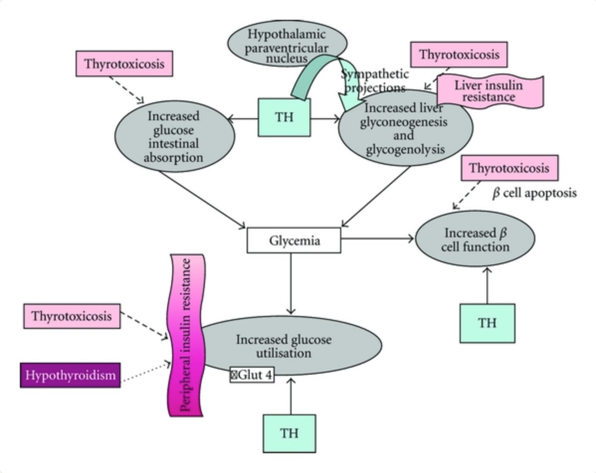 Brenta G. Why can insulin resistance be a natural consequence of thyroid dysfunction? J Thyroid Res. 2011.