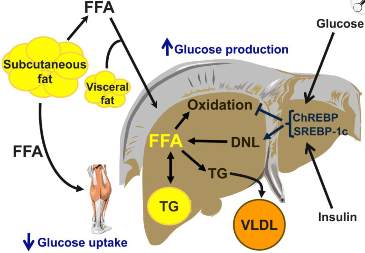 Kumashiro N, Erion DM, Zhang D, et al. Cellular mechanism of insulin resistance in nonalcoholic fatty liver disease. Proc Natl Acad Sci U S A. 2011;