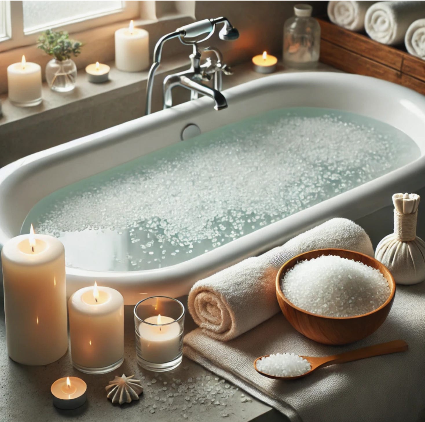 Higher concentrations are used for floatation setups, where a single tub can take up to 10 kg of salt - don’t do this at home. In my experience, 1 kg is enough to ease muscle pain, bring down swelling, and improve skin conditions like psoriasis, eczema, and atopic dermatitis.